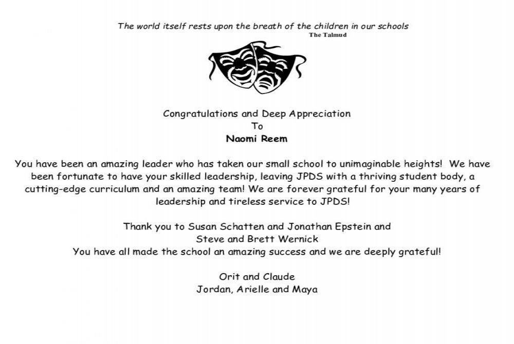 A Tribute to our Beloved Head of School Naomi Reem