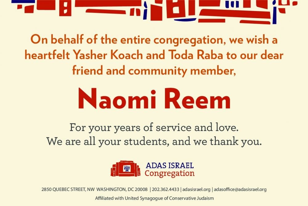 Todah Rabbah to Naomi Reem for 15 years of visionary leadership.