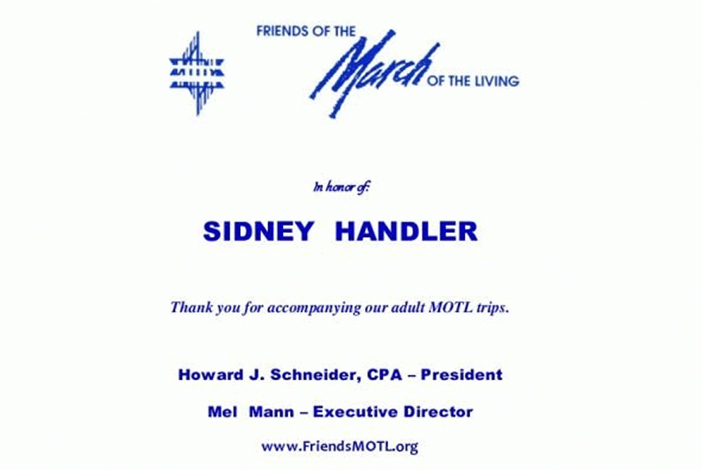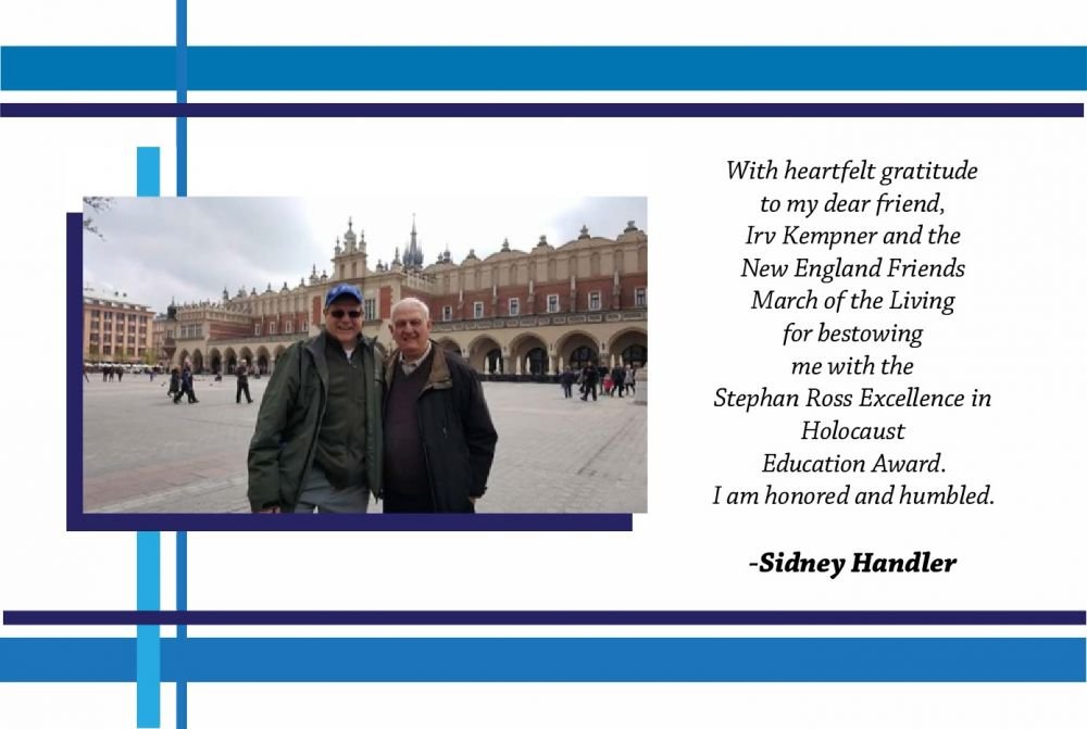 In honor of Sid Handler and the New England Friends of the March of the Living. Please keep doing this important work.
