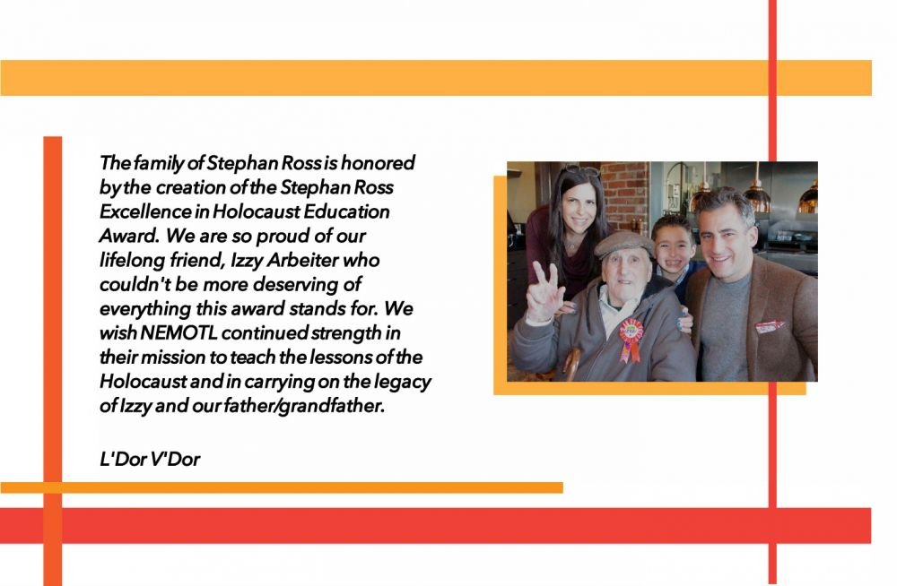 Arbeiter on his lifetime of achievements as the recipient of the Stephan Ross Excellence in Holocaust Education Award David Schechter Foundation