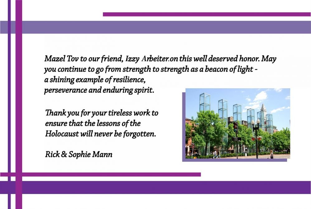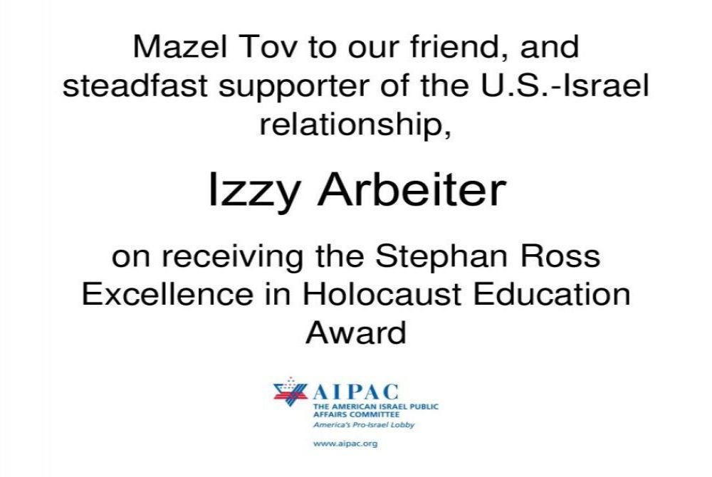 American Association of Jewish Holocaust Survivors & Descendants of Greater Boston is delighted that our beloved Izzy Arbeiter is being honored by the March of the Living with the Stephan Ross Excellence in Holocaust Education award.