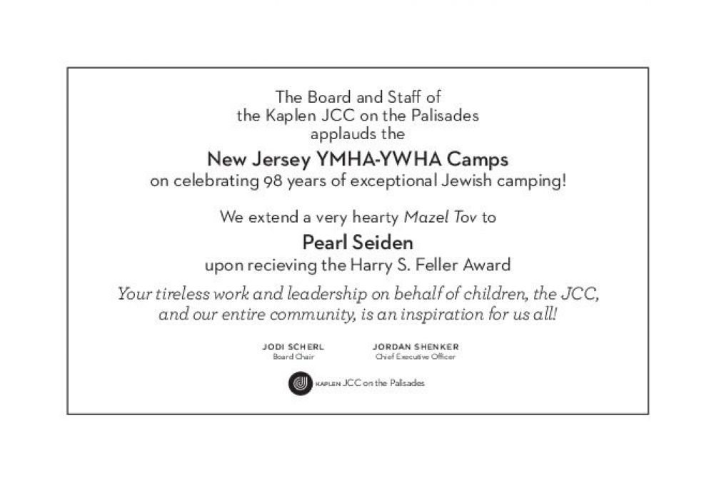 CELEBRATES NJY CAMPS FOR ALL THE YEARS OF SUCCESSFUL JEWISH CAMPING! MARC JASON & TOTAL ENTERTAINMENT! 800- 783-9335 Opal