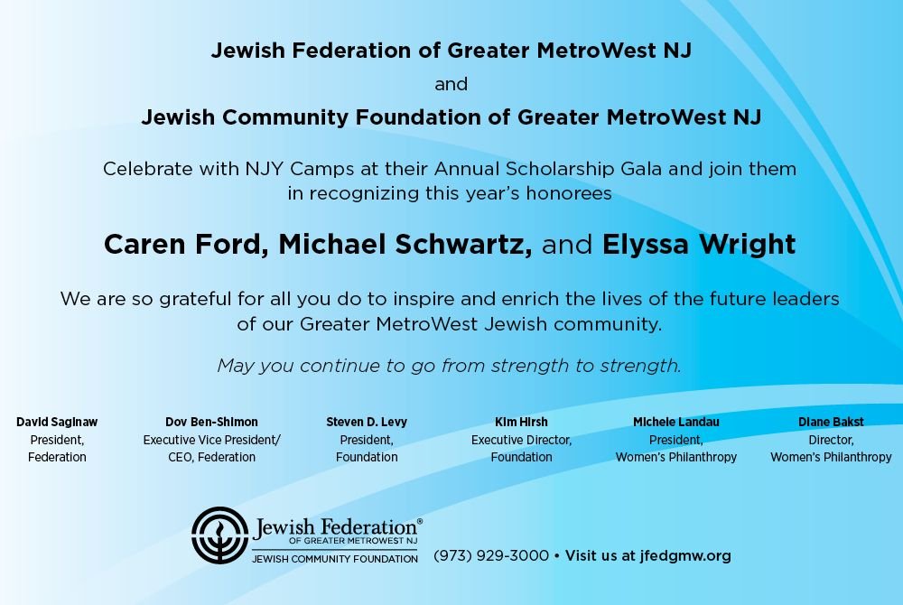 NJY Camps we want to recognize your unparalleled commitment to the campers and families of NJY Camps and extend our deepest sense of gratitude and heartfelt thanks for the vital support you provide to not only NJY Camps but the entire Jewish Community at large.