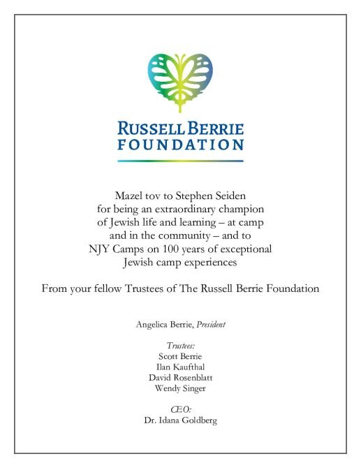 A special shout out to our brother and Uncle Stephen Seiden whose energy, vision and wisdom have enriched the lives of so many NJY campers