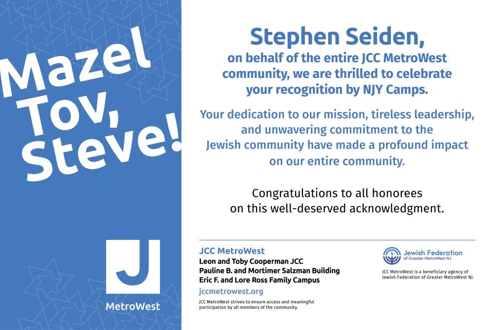 Steve, thank you for your leadership, mentorship, and friendship. You are a role model for members of the NJY and Jewish community at large.