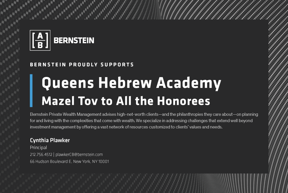 Mazal Tov to Linda Vance who has helped Queens Hebrew Academy maintain solid financial results throughout the years Cara & Michael Trager