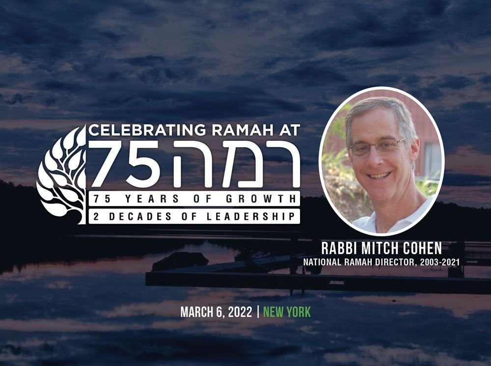 Mazal tov to Ramah for 75 years of growth and innovation and to Rabbi Mitch Cohen for two decades of inspirational leadership. Leah & Aryeh Meir