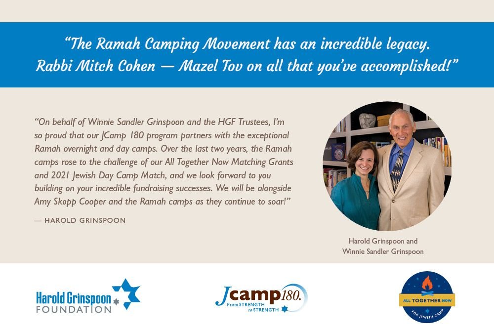 Kol Hakavod to Rabbi Mitch Cohen, whose vision and guidance inspired AVI CHAI to invest in Ramah's growth and success. And I was fortunate to work with a wonderful colleague and friend for so many years! Joel Einleger
