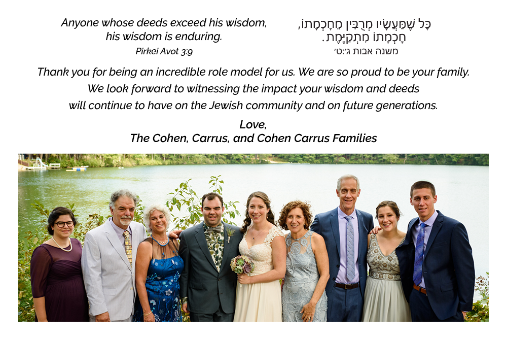 Kol haKavod, and thank you, to Rabbi Mitch Cohen for his dedication and years of service, impacting generations of families. Annie & Ari Hoffnung and Family