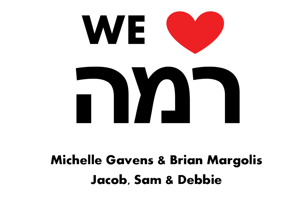 לבבנו מלא רחשי הודיה with appreciation to Rabbi Mitch Cohen and wishes of הצלחה רבה to Amy Skopp Cooper and מחננו רמה Robin & Gil Graff