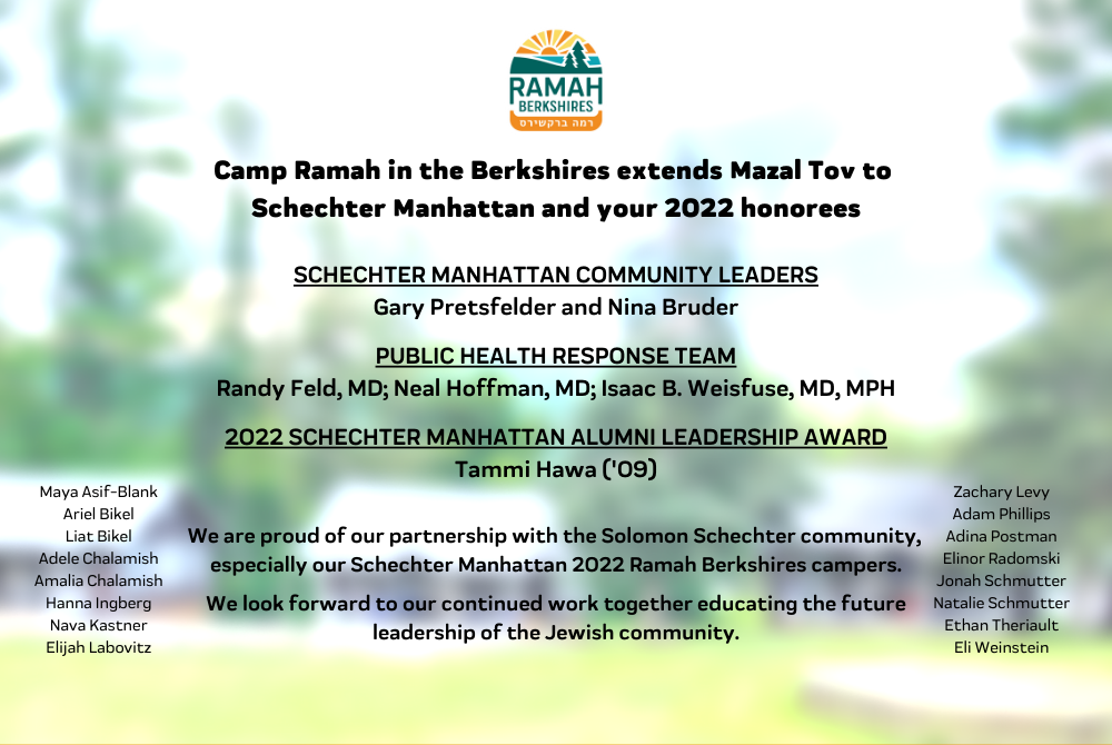 Mazal Tov to all of the honorees! Special thanks and appreciation to Gary for his outstanding leadership and support for our beloved Schechter Manhattan Rabbi Richard and Sharon Hammerman