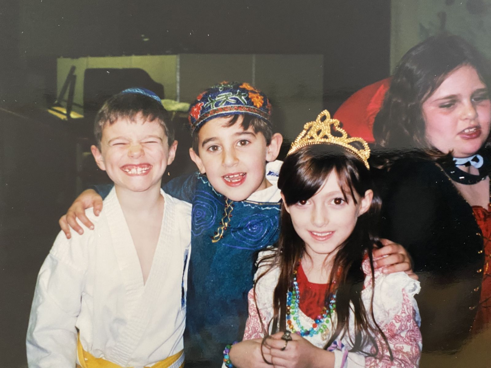 ""Aron Wander's 6th Birthday at School, March 1999.(Left to right: Jesse Bronstein, Aron Wander, Charles Kupferberg, Kayla Silver)