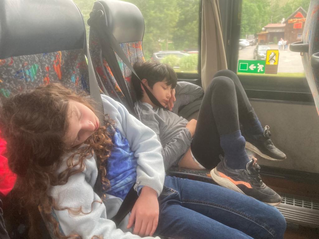 "Asleep on the bus on the way home from the Shabbaton!"