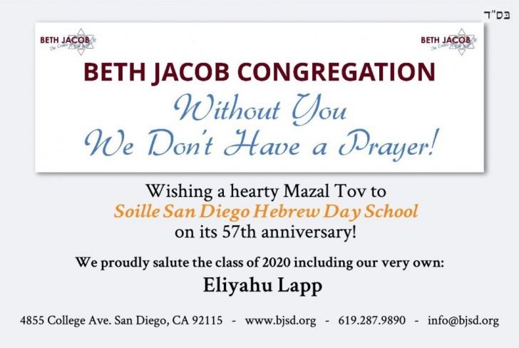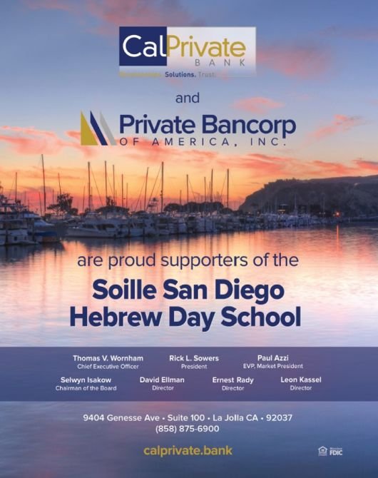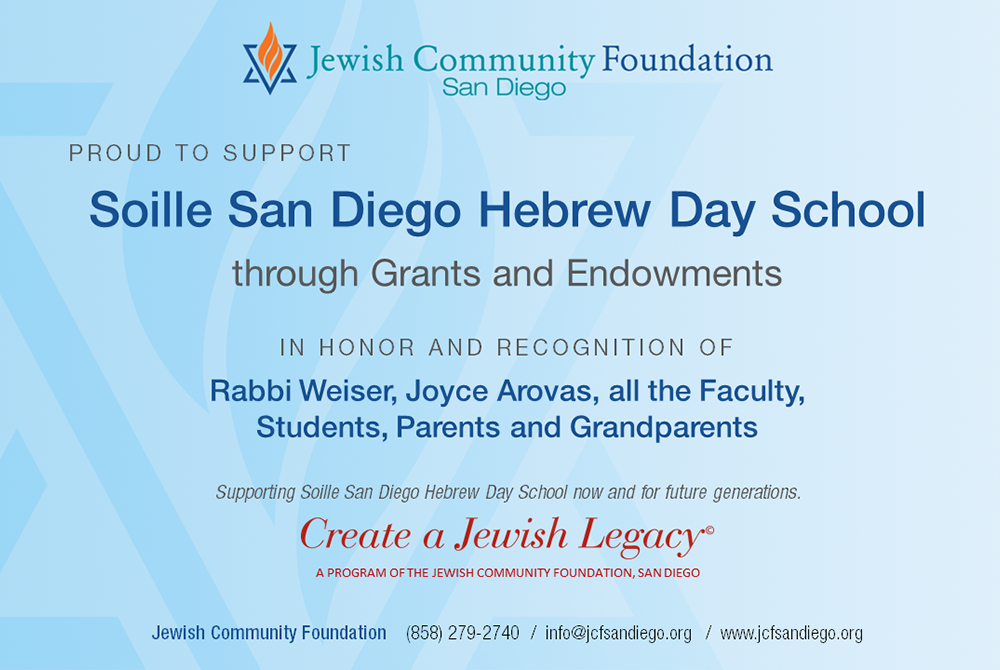 Yasher Koach to Rabbi Weiser and the dedicated teachers at the San Diego Hebrew Day School Stuart and Nora Laiken