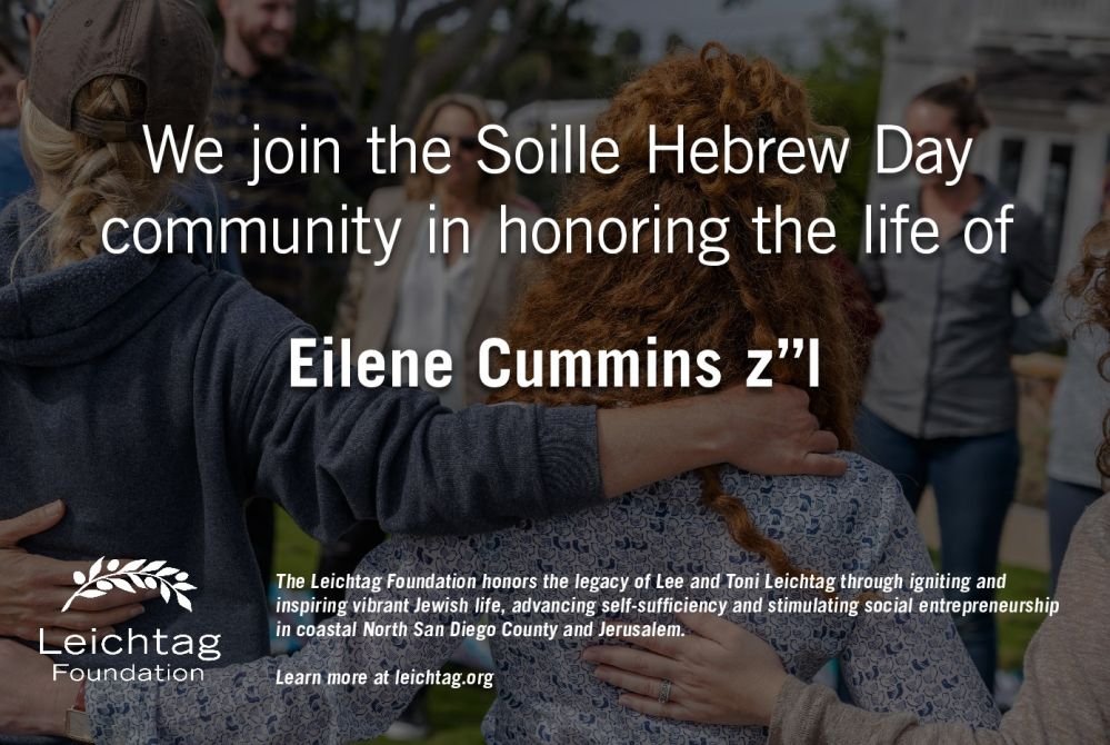 Eilene Cummins was a pillar of support and devotion to Soille Hebrew Day for four decades. Eilene served as Board President and long serving Board member, as well as a parent and grandparent. We are indebted to her for her tireless community work, visionary leadership, and love of Judaism.