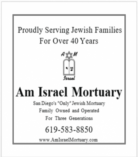 CONTI & SON MONUMENT COMPANY 3871 Imperial Avenue, San Diego, CA 92113 619-264-2480; 619-264-1431(fax) Email: [email protected] Markers, Monuments, Personalized Memorials, Statues, Benches Serving all of Southern California. Family owned and operated since 1935 Congratulations to Soille Hebrew Day for making a difference in the community. Marty Orgel Chaverim I