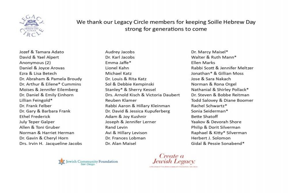 And marking the completion of our 23rd year as the Rabbi Henry and Rebbetzin Esther SOILLE SAN DIEGO HEBREW DAY SCHOOL In Memoriam