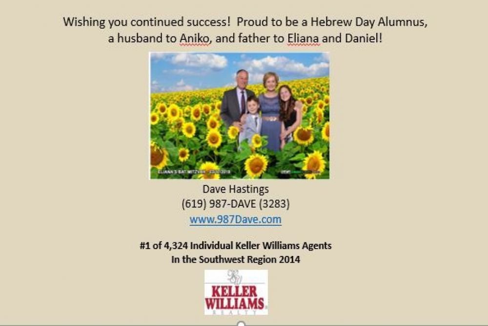 33 years ago, and we're proud to have our son, Shai, continue the Hebrew Day School tradition.