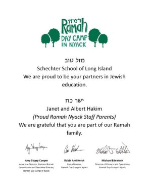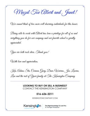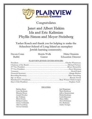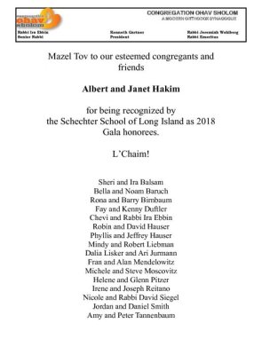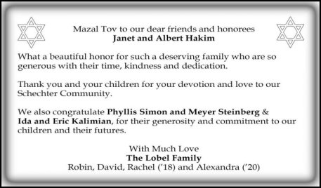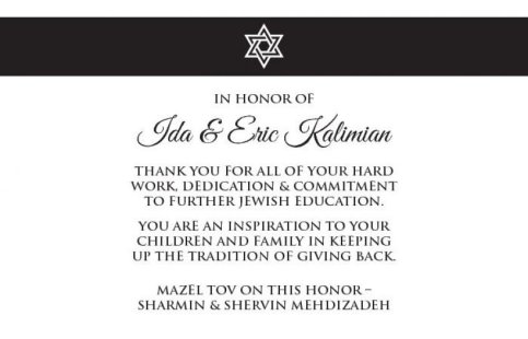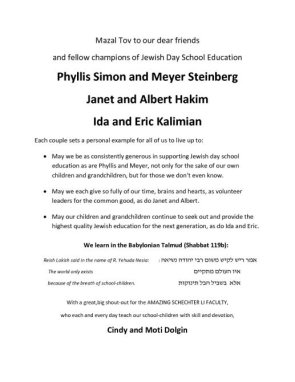 Mazal Tov, Janet & Albert Hakim and Ida & Eric Kalimian. Thank you for everything you do for our school.