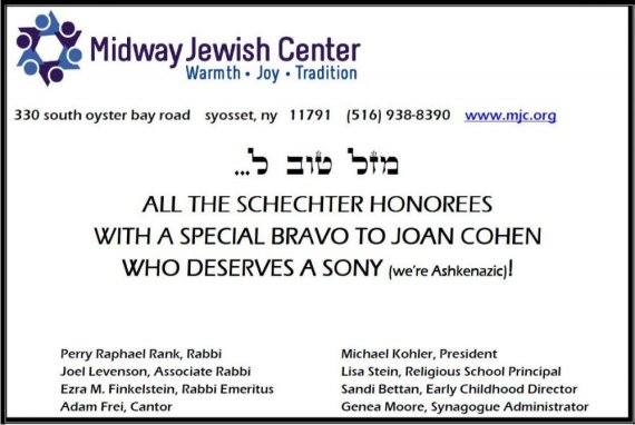 Mazel Tov on your recognition by Schechter