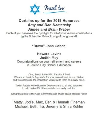 2019 Schechter Gala honorees.
