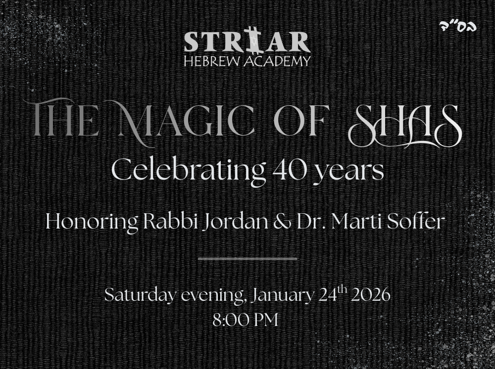 Mazel Tov to honorees Rabbi Jordan and Dr. Marti Soffer and to SHAS on 40 years! May you go from strength to strength! Rachel and Ernest Mandel and family