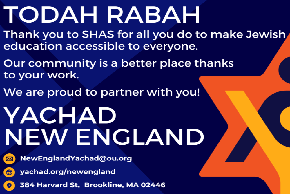 Todah Rabah for your dedication to SHAS and your commitment to Jewish Day School education! Debbi and Michael Bass