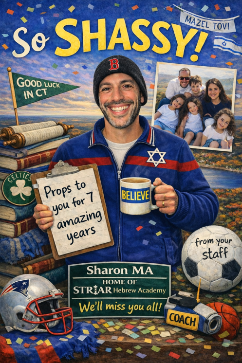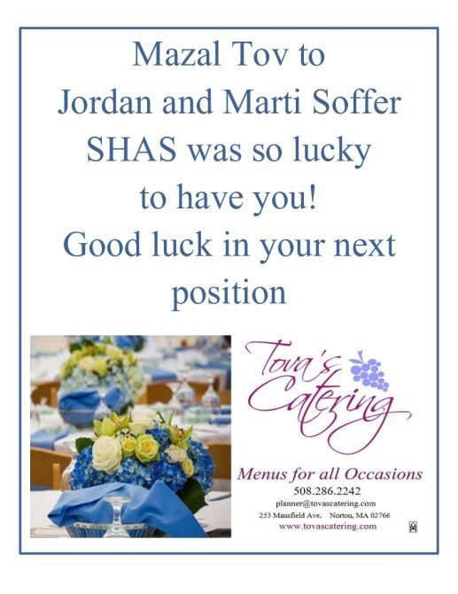 Thank you Jordan and Marti for your contributions to SHAS and the Sharon community. Hatzlacha on your next step! Stacey and Shimmy Trencher