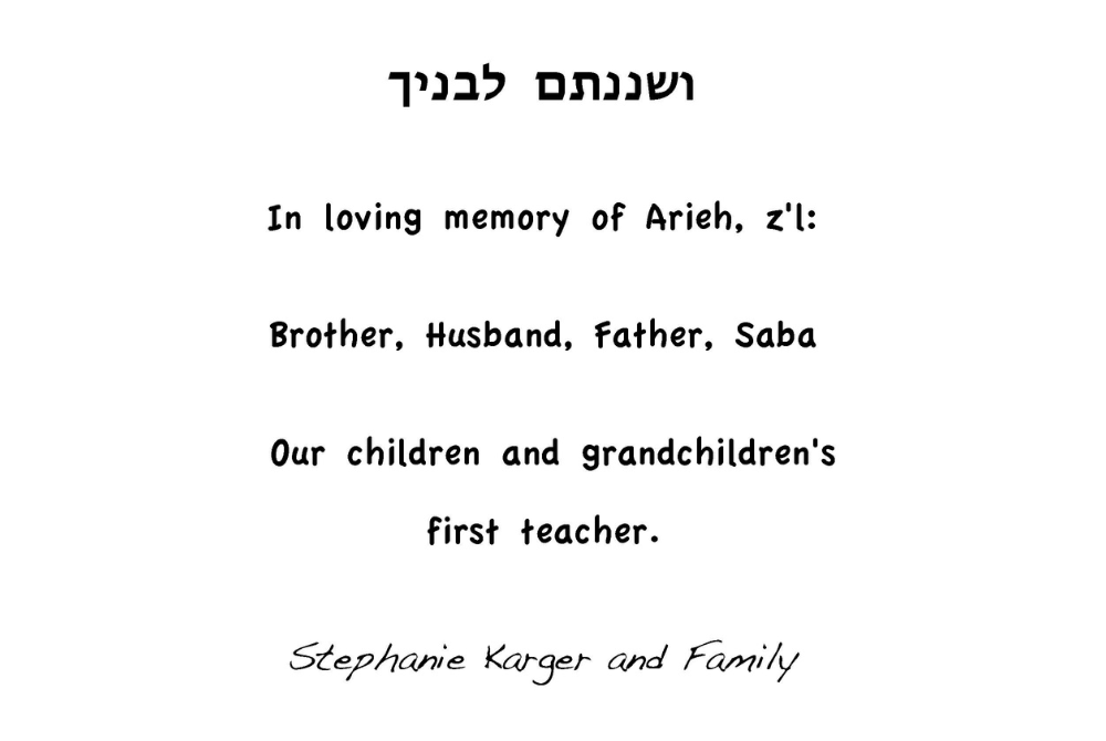 "The greatest gift we can give our children is not money or possessions, but a story." --Rabbi Jonathan Sacks, Lessons in Leadership Thank you for the stories. Hershel and Debbie Ellenbogen and Family