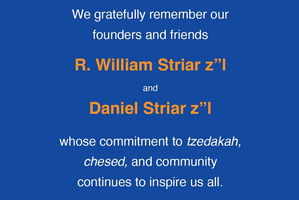 Mazel Tov to the honorees on this well-deserved honor. Your commitment to Striar Hebrew Academy is so appreciated. Stewart and Thelma Hirsch