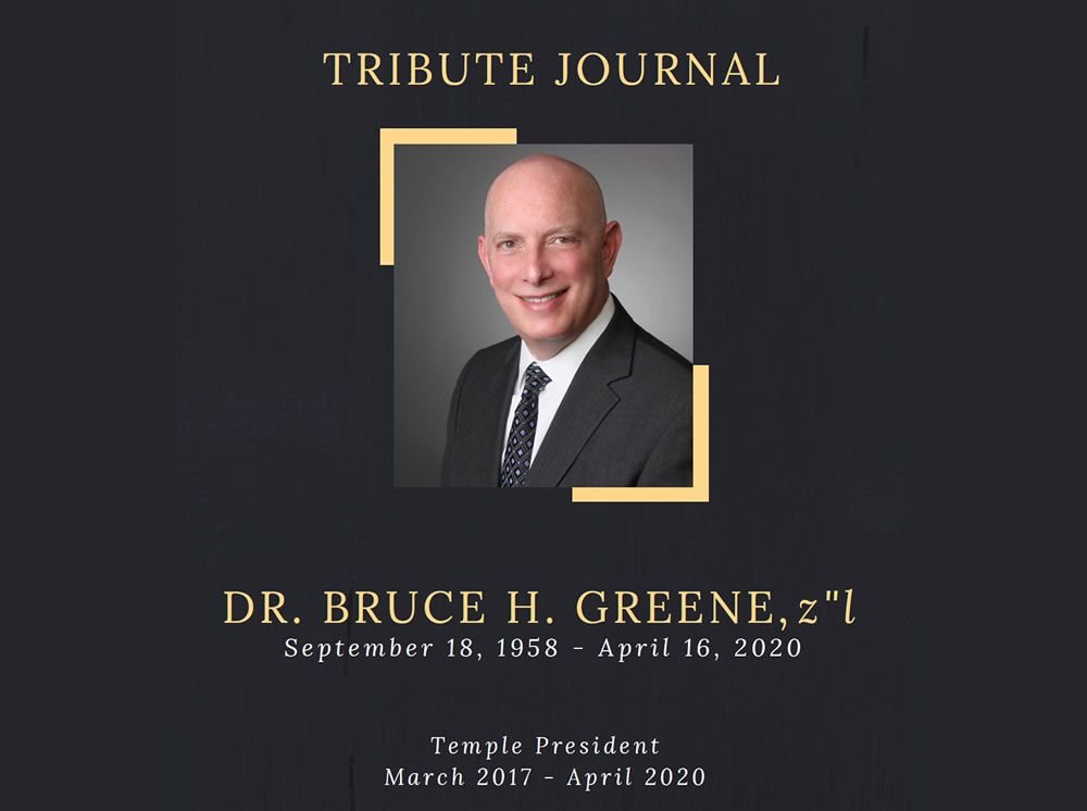 Bruce, you are missed every day. But your strong, caring leadership left its imprint on us and on Temple B'nai Abraham. Amy and Jason Esralew