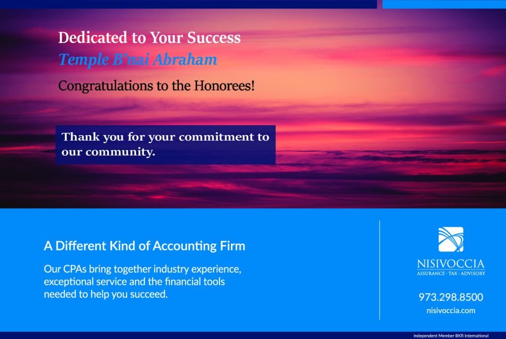 Congratulations to the honorees for their leadership and dedication to Temple B'nai Abraham. Northern Valley Affairs