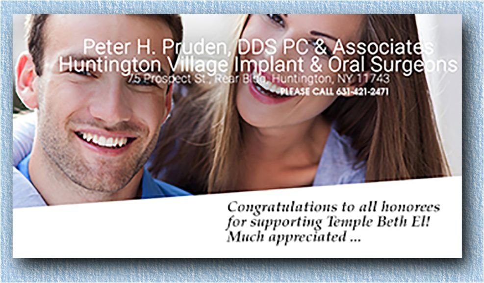 for your continuing efforts to help our Huntington community. Bible Study of Temple Beth El