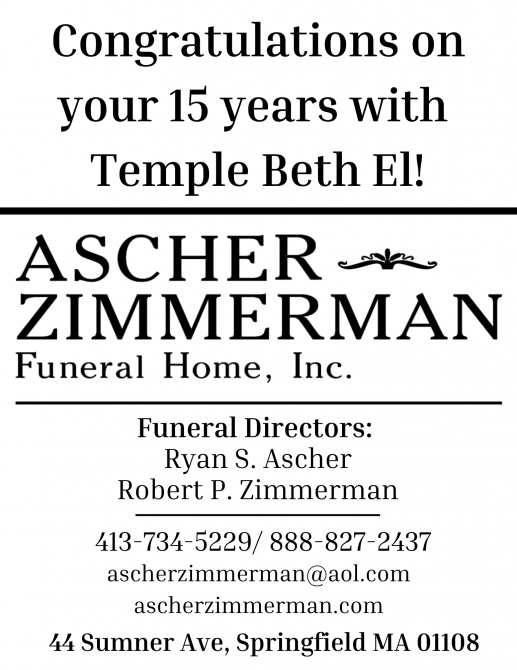 with her 15 years of dedication and commitment to Temple Beth El and the greater Jewish community in Springfield.