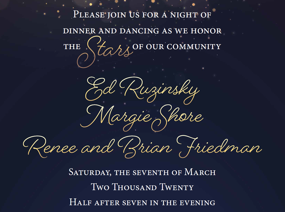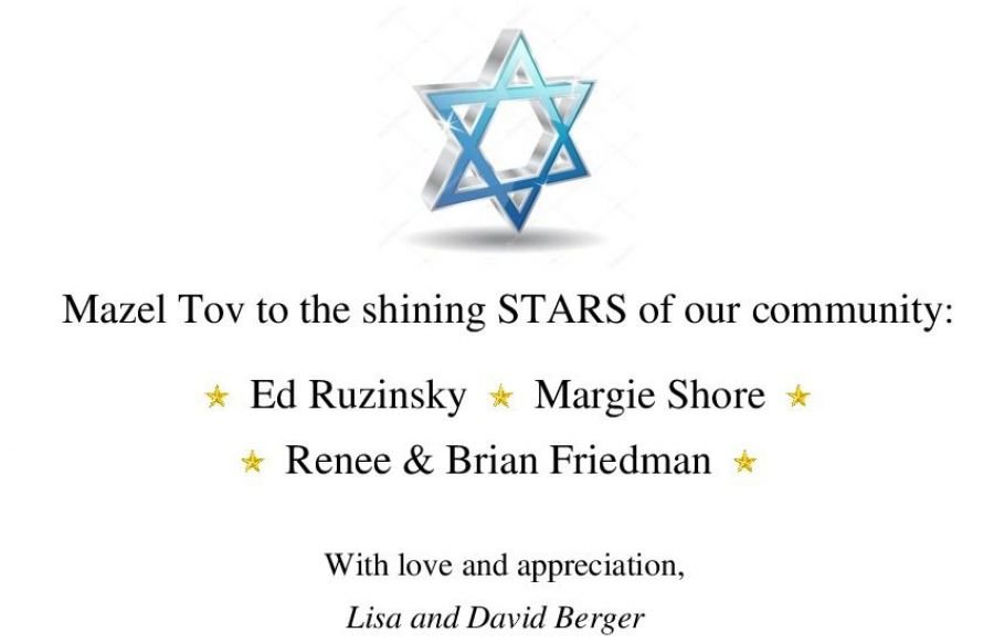 Yasher Koach to the STARS of our community: Ed Ruzinsky, Margie Shore, and Renee & Brian Friedman