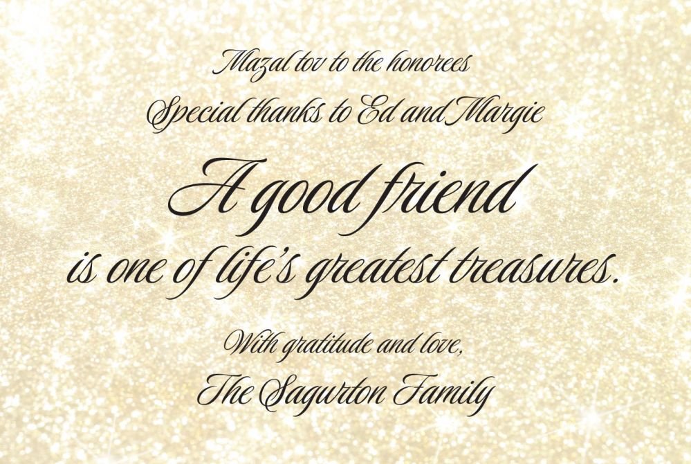 Mazel Tov Ed Ruzinsky Margie Shore Renee & Brian Friedman