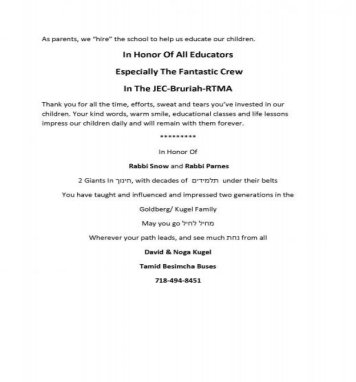 With appreciation To the faculty and staff of JEC for their never-ending efforts to give our sons the best possible Yeshiva education