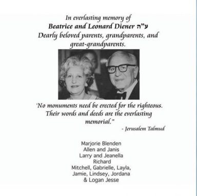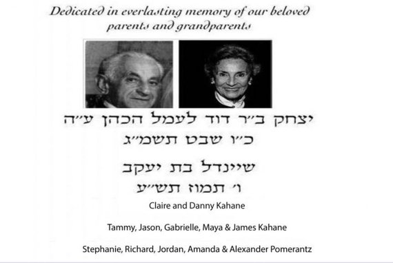 In honor of Bryan Fox in appreciation for his decades of dedicated service to our community. In recognition of the Class of 1993, their rebbi, Rabbi Parnes, and - among his hundreds of beloved talmidim - ארי בן יוסף ז"ל.