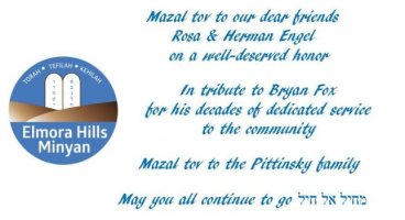 Mazel Tov to Herman and Rosa Engel on your well deserved honor of being Grandparents of the Year. May you continue to see only nachas from your children and grandchildren!
