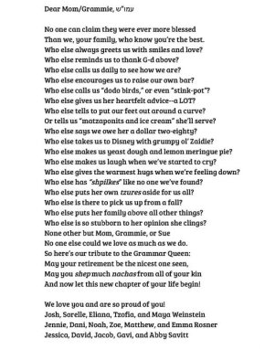 Mazel Tov to Sue Weinstein our dear mechutenant and friend