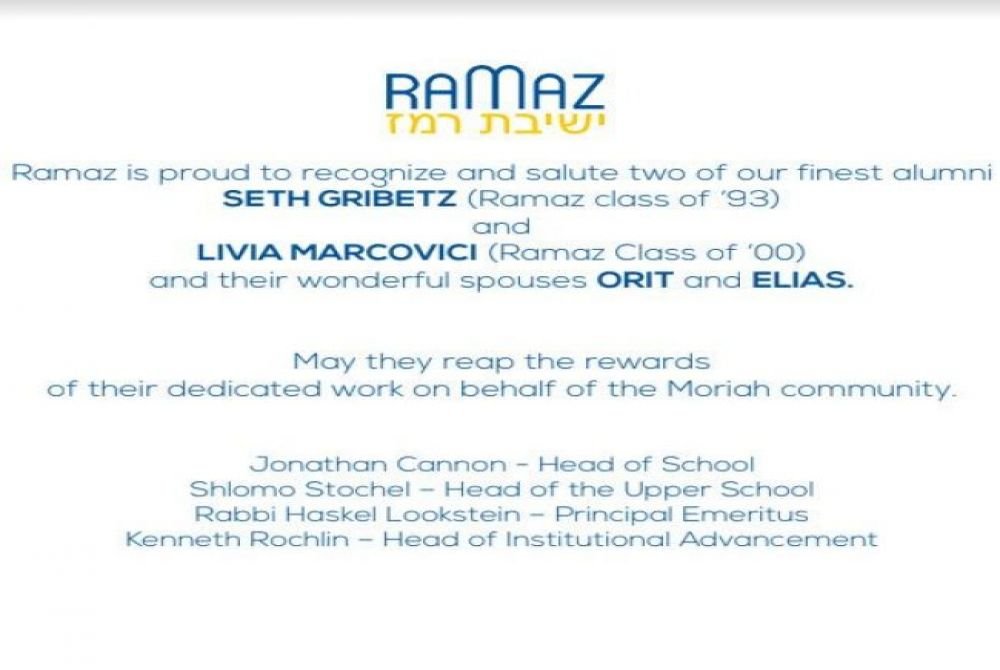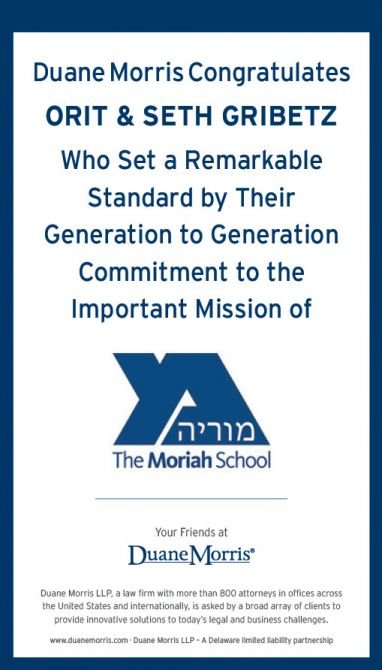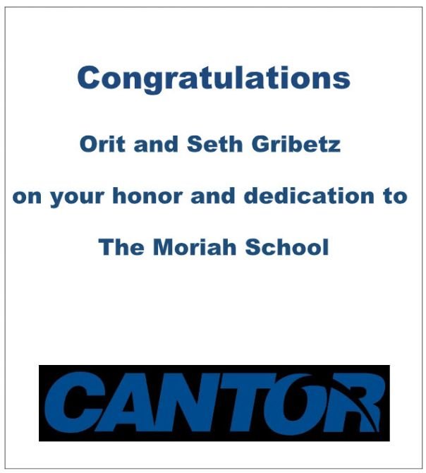 Orit and Seth Gribetz A well-deserved honor on behalf of your leadership, devotion and commitment to Moriah.