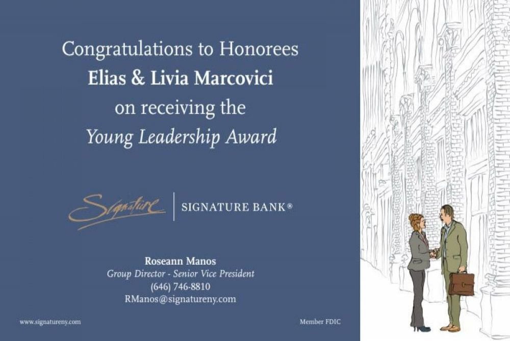 Congratulations as well to Livia and Elias Marcovici on your well-deserved Young Leadership Award.