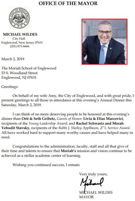 You are an exemplary teacher and a tremendous asset to the Moriah community.