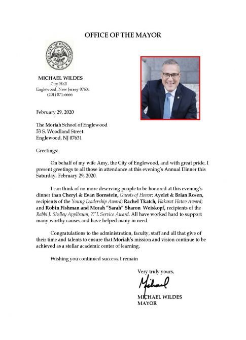 and your vision in making Moriah an outstanding Yeshiva day school.