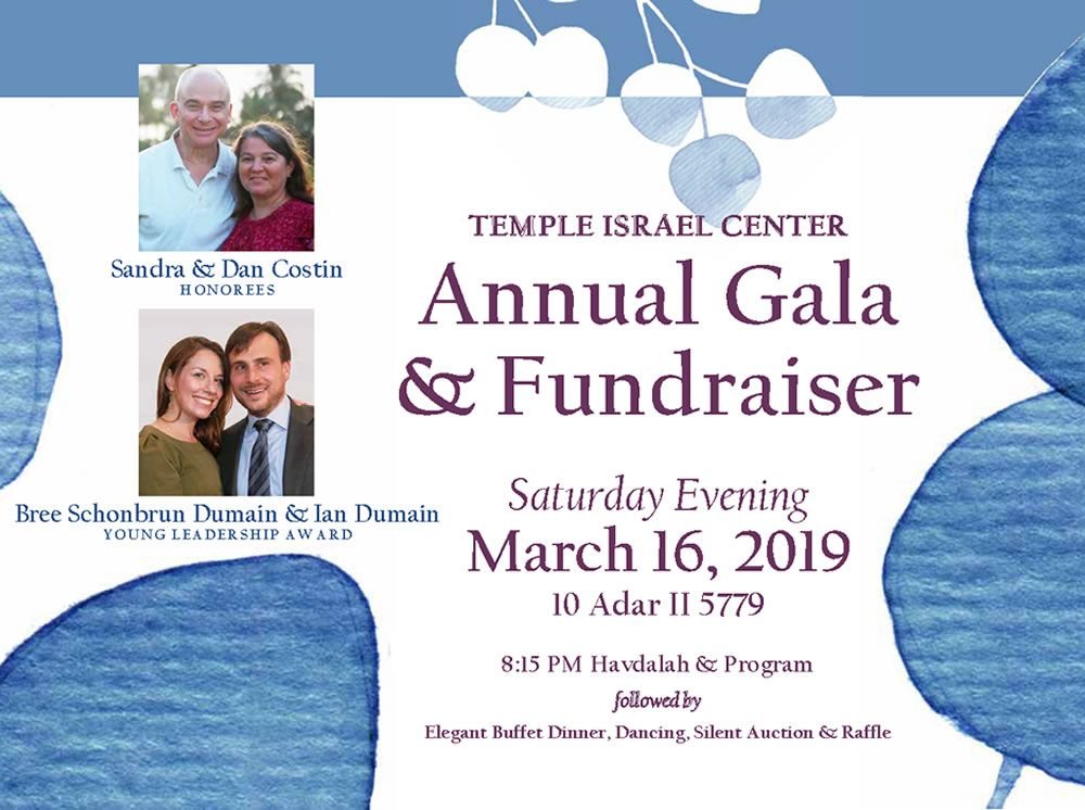 Mazal Tov to the Temple Israel Center community. Vivian Fried and Lee Podair Mazal Tov to honorees Sandra & Dan Costin and Bree Schonbrun Dumain & Ian Dumain. Thank you for all that you do for our TIC community. Shirley and Hymie Shwiel Donor