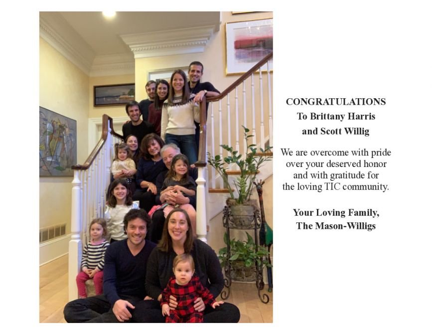 Mazal Tov to Judith & Neil Grand and Brittany Harris & Scott Willig. Our community is so lucky to have you - thank you for everything you do to make it better! Stacey & Stu Wechsler Mazel Tov to this year's gala honorees! And all our thanks to the clergy, leadership and education teams for continuing to keep our TIC community so strong during these times. Brian, Melissa, Jake & Charlotte Weiss Supporter