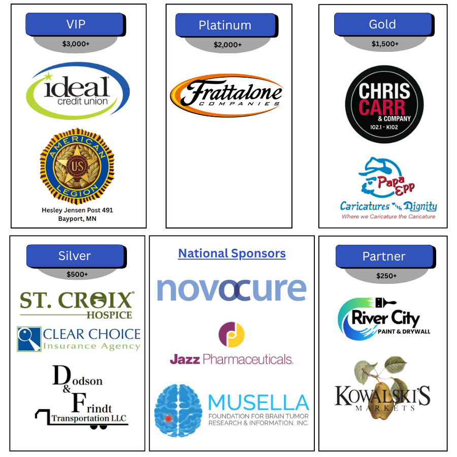 The MN Brain Tumor 5K is in need of local corporate sponsors for both monetary donations and in-kind donations that will be used for our event! All "leftover" corporate sponsorship money goes directly to brain tumor research. If your company is interested in sponsoring the 5K please contact us at [email protected].
