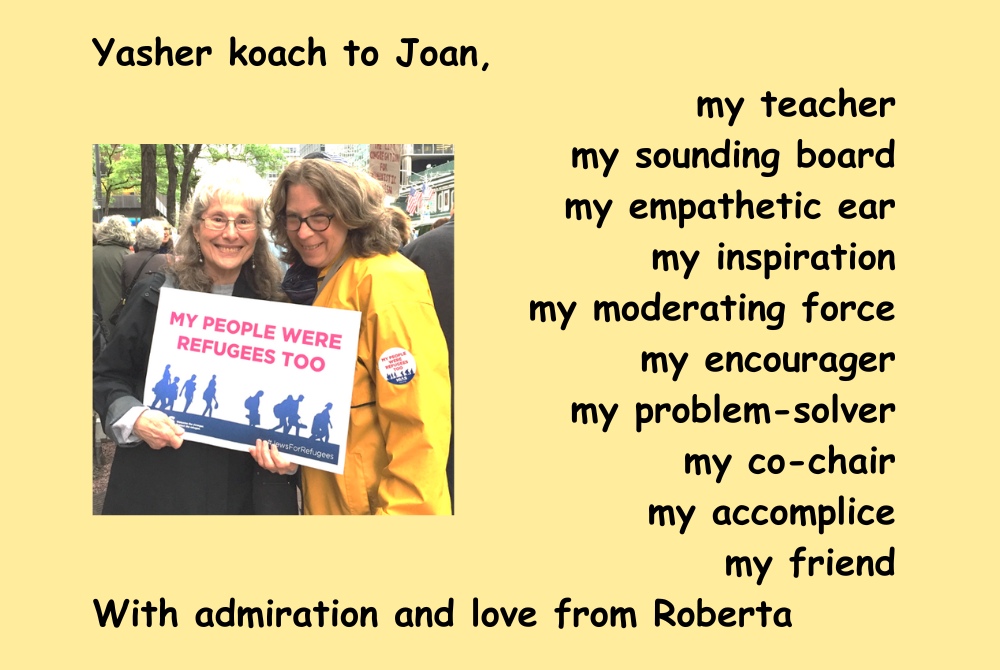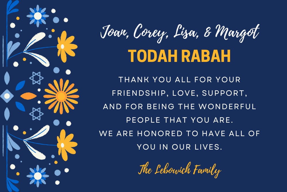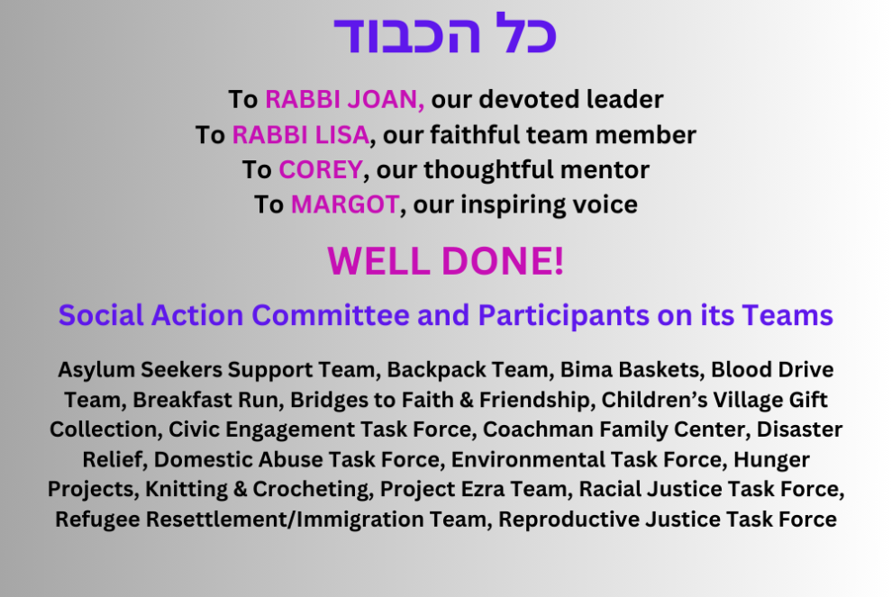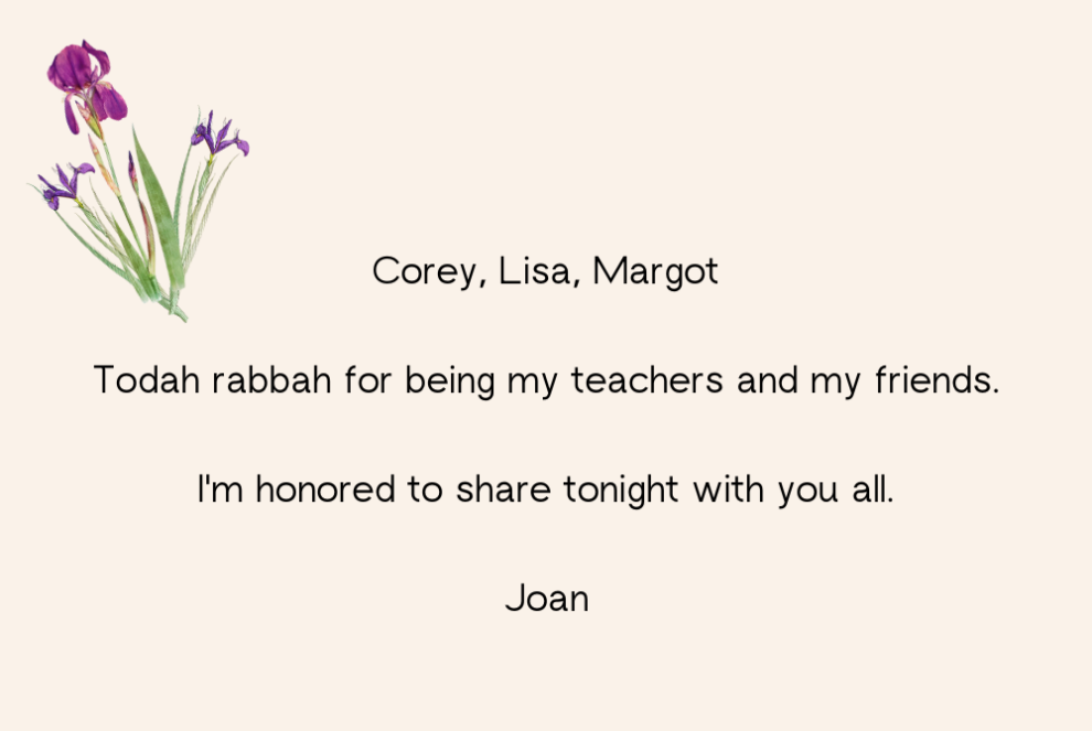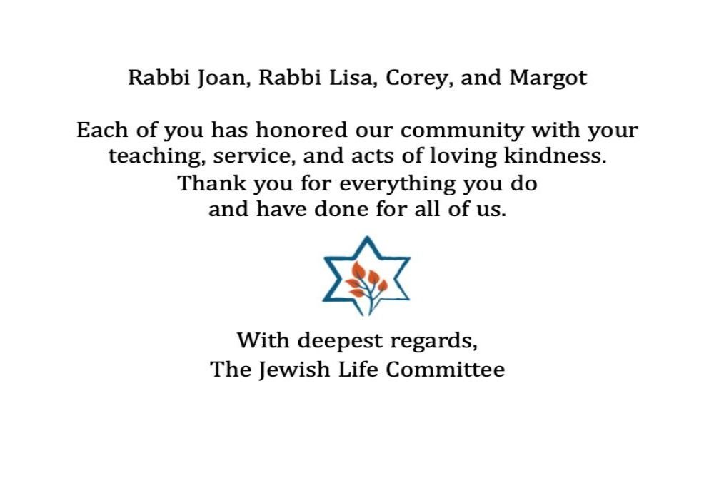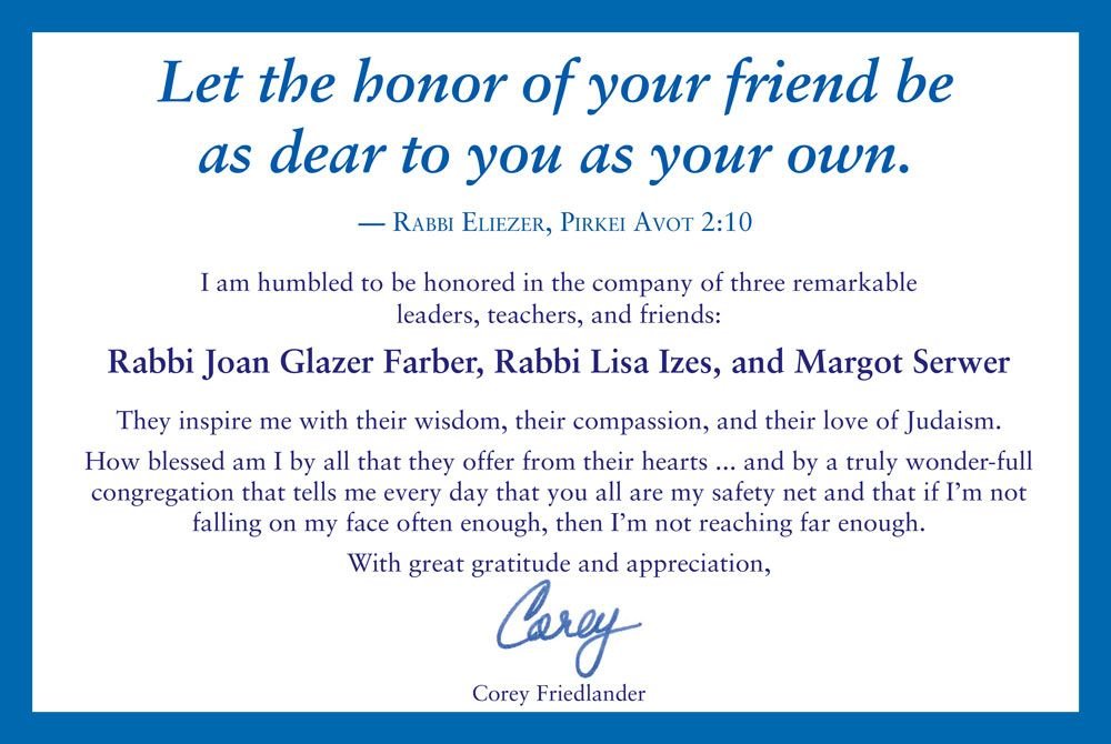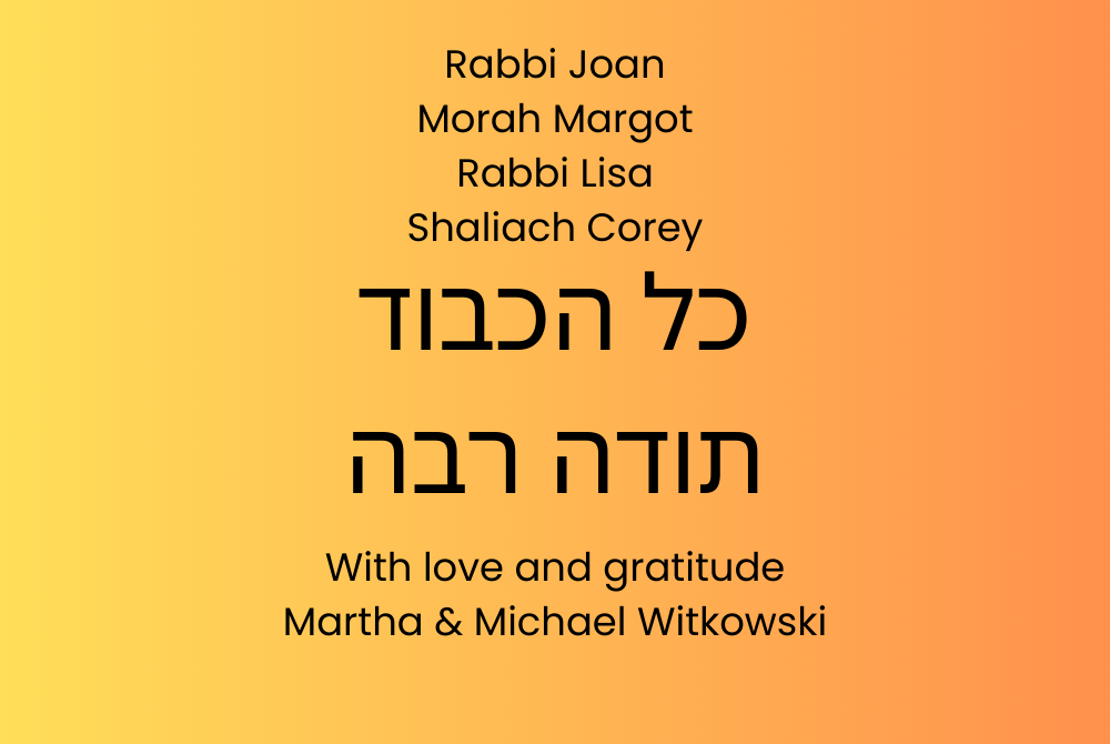 To Margot, Rabbi Joan, Corey and Rabbi Lisa -