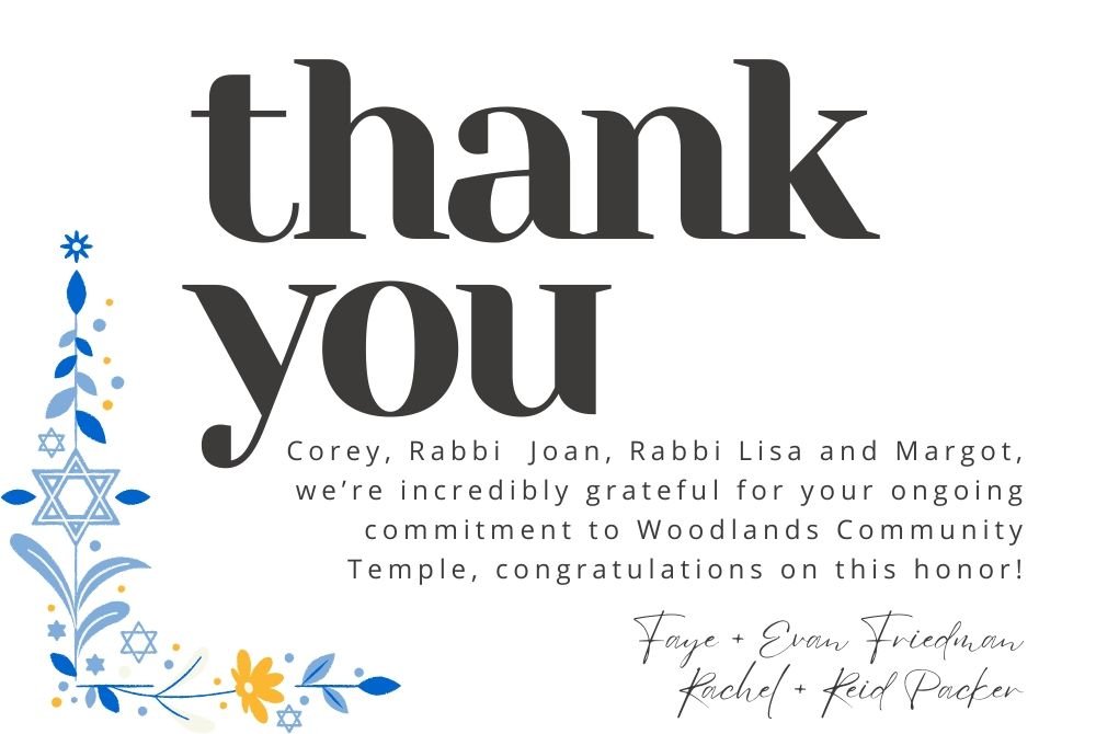 Mazel Tov Y'all Thank you for all you do for Woodlands
