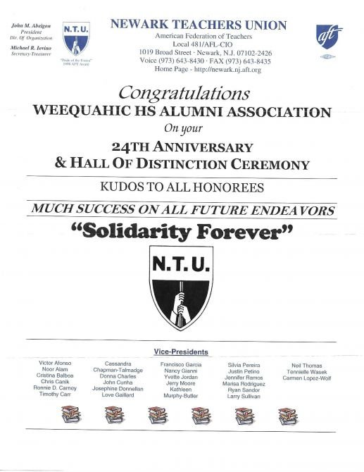 Congratulates the 2021 Class of Inductees to the Weequahic